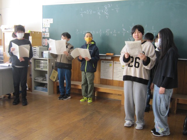 2学期半ばから、クマの出没のため、スクールバスの運行の時間差が大きくなりました。1便で到着する児童から2便で到着する児童まで、40分ほど差があります。2便で到着した児童の朝の支度が遅くなってしまい、朝学習の時間の確保が課題となっていました。職員で話合い、3学期から、それでもなんとか内容を工夫したり、学習時間確保を子どもたちにも意識させたりして取り組もうと挑戦しています。