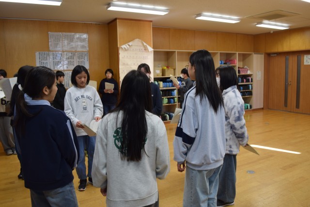 今回の2年生が中心となって計画・運営しました。豆まきという日本の季節の行事を経験することの他に、進行役や各班のリーダーシップ、1年生を楽しませようとすることが2年生にとっての学びになります。準備や運営の為の練習に時間がかかったかと思いましたが、ここまでの2年生の取組でしっかり育っていたため、自分たちで運営することができたそうです。