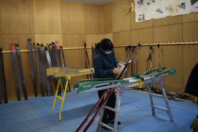 6日(金)に行われる南魚沼市親善スキー大会に向けて、準備が進められています。クロスカントリースキーは、板の面の調整も競技の一部のようなものです。数日前から、昨年度から保管のために面を保護していたワックスを剥がし、今年度の大会のための下地ワックスを塗る作業をしていました。