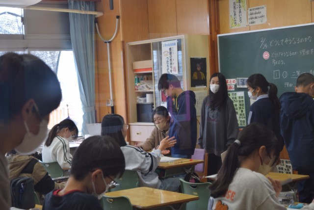 6年生は、課題に対して教え合ったり質問したりする場面でした。6年間の指導内容を終え、中学校数学の入り口にあたる学習をしています。分からないところを質問できることは大切な力です。