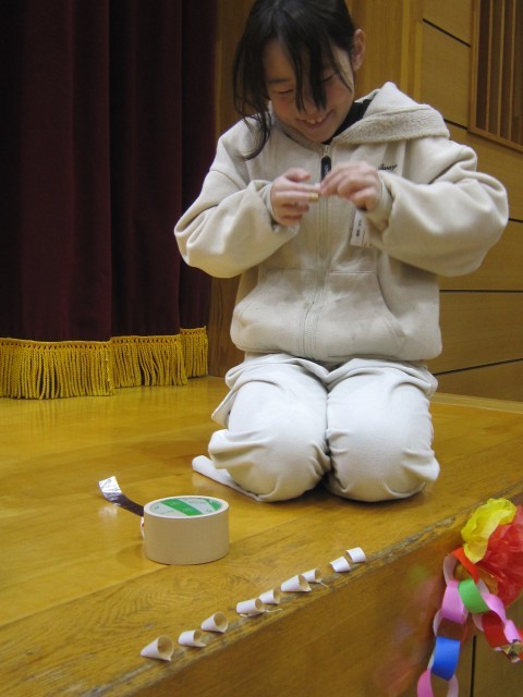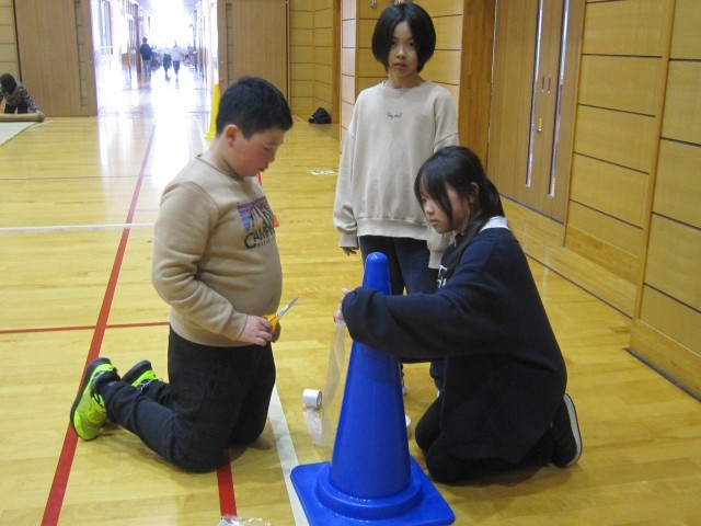 かわいい場面を見つけました。貼りやすいよう両面テープを切って並べる、それをとって貼る、と黙々と作業する二人を見かけました。作業をするということは、相手の作業のしやすさや全体の効率性を考えられる、生きて働く力が必要だと思います。机上の学習だけでは培えないところです。
