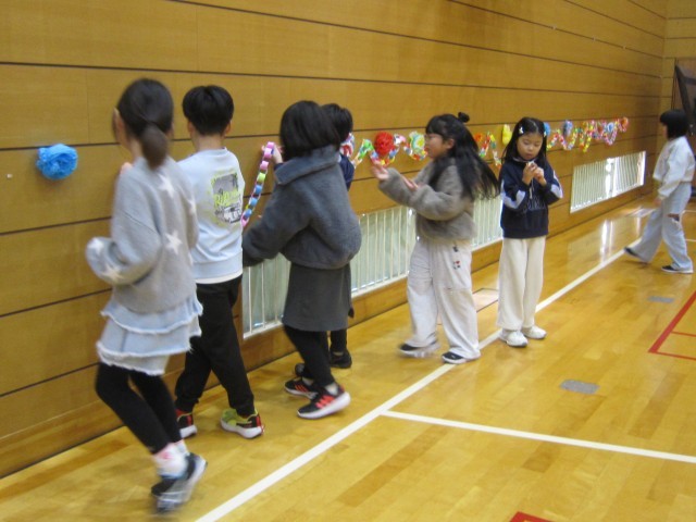 3年生も力を合わせて飾り付けます。輪飾りは相当な数が必要だったことでしょう。