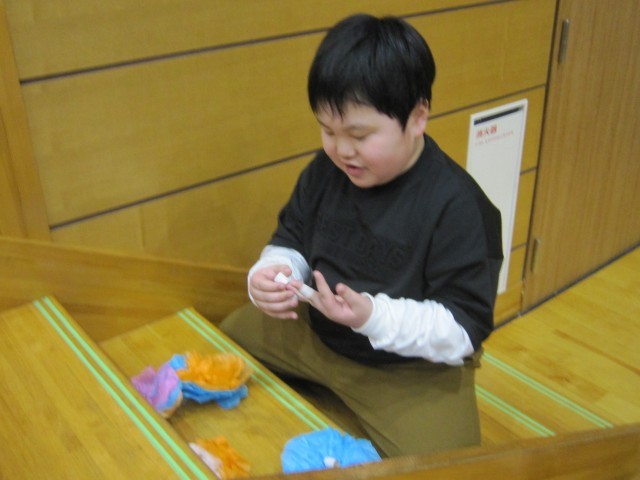 練習していなかったあやとり。「めっちゃ楽しい」とずっとやっているや優しく見守ってもらいました。お手玉は、少しできると、すぐに地域の方が褒めてくれるので頑張れます。
