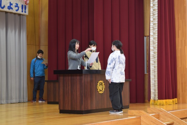 また、書き初め大会の成績上位の児童の表彰も行いました。表彰を受けることが良い励みになればいいなと思います。