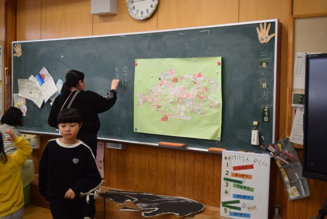 5年生は、見取り図の書き方のコツを見つけ合う学習でした。コンパスを使ってもうまく曲線を表せないこと、マス目を利用することなど、言葉にして説明することで図の特徴を明らかにしていくのだなと感心しました。