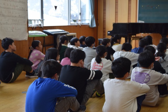 無事、インフルエンザ罹患児童が次々と登校できるようになり、4,5年生と教職員で、卒業式の準備をすることができました。6年生も全員が健康な状態になり、今日、全員そろった貴重な最後の練習を行うことができました。