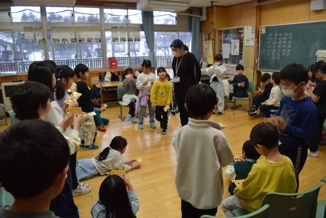 1年生は、ビンゴゲームなどたのしいゲームでお楽しみ会をしました。自分たちで考えたりルールを守ってたのしくできたりするようになりました。
