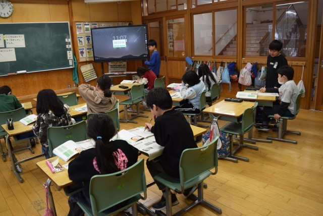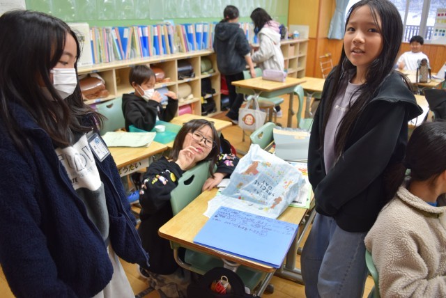 4年生は、転校する友達との別れを惜しみ、互いにサインやメッセージを送り合いました。さみしい気持ちを埋めるかのように、温かい言葉が交わされました。