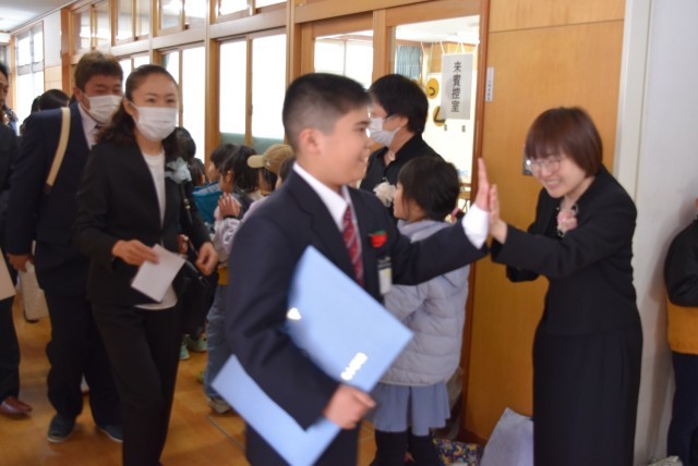 一人一人に拍手を送る在校生や教職員、会場全体が、温かく、これまでがんばってきた6年生への感謝のきもちに包まれました。
