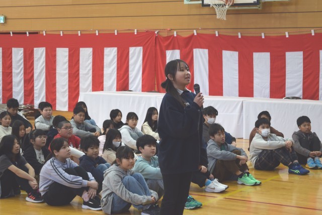 プログラムの最後には5年生が6年生一人一人について、思い出と感謝を伝えました。「○○さん、委員会の時に教えてくれてありがとう」など、一人一人がエピソードを語って感動的でした。「好きすぎて・・・」とダンスも良かったです。