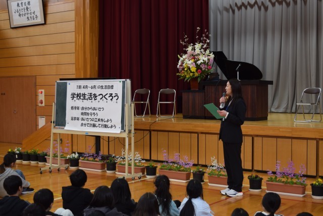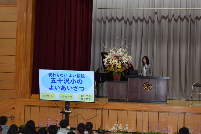 今年度は4名の転入職員を迎え、育児休暇から復帰した職員、市職員等を含め、19名の職員と150名の子どもたちです。校時表や鼓笛隊の終了に向けた活動、五十沢小コミュニティ・スクールの活動、地域の活動など、新しい取組がたくさんある令和8年度です。子どもたちと「新しい伝統をつくっていこう」と話しました。そして、五十沢小学校の変わらない よい伝統「よいあいさつ」を続けることを確かめ合いました。