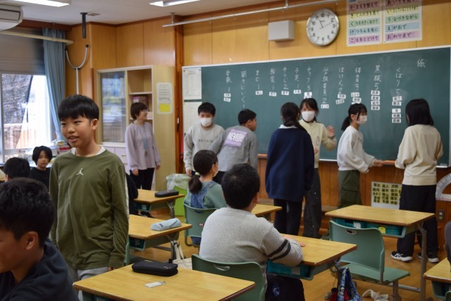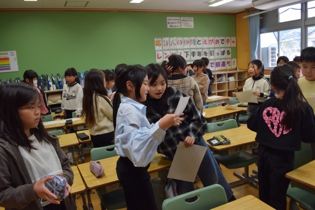 4年生は、転校する友達との別れを惜しみ、互いにサインやメッセージを送り合いました。さみしい気持ちを埋めるかのように、温かい言葉が交わされました。