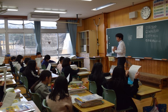 3年生は、担任以外で音楽や体育、国際科でお世話になった先生に、お礼の手紙とメッセージを届けました。全員で感謝の言葉を言い、記念写真を撮りました。