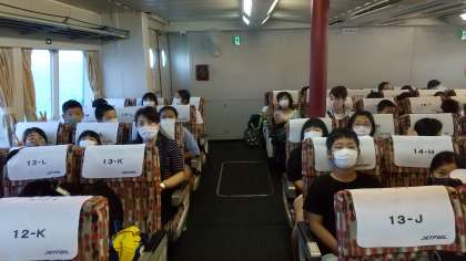 14時35分新潟港をバスが出発しました。波はおだやかで、船酔いする児童はいませんでした。全員元気です。17時頃学校に到着予定ですよろしくお願いします。