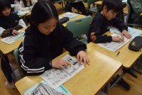 3年生は、図工で紙版画をしました。自分が気に入った動物の版を作り、それを紙の中に配置する場所を決めて、刷り上げます。同じ版を並べたり向きを変えたりしながら繰り返し刷ることで、動物の動きや場面を表現して...