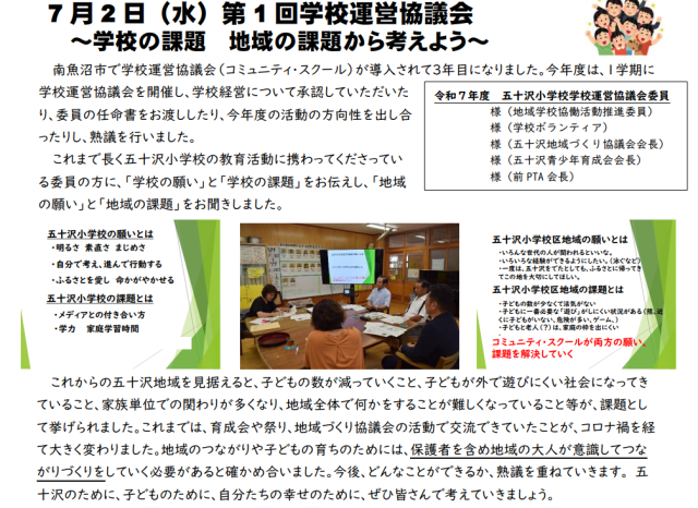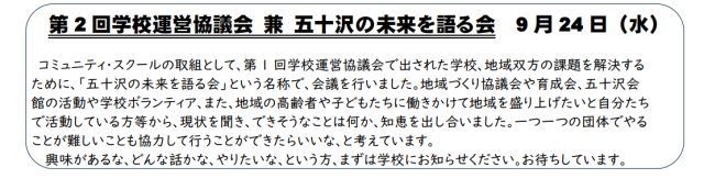 • 9/24 第2回学校運営協議会 第1回五十沢の未来を語る会
