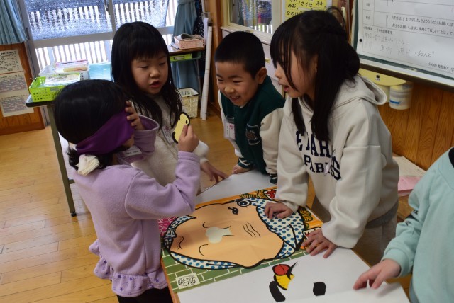 低学年で豆まき集会を行いました。きずな班(縦割り班)ごとにチームになり、豆に見立てた新聞紙を丸めたものを、一人一人が「心の中から追い出したいこと」を書いた鬼の顔カードに向かって投げ合います。やはり一番...