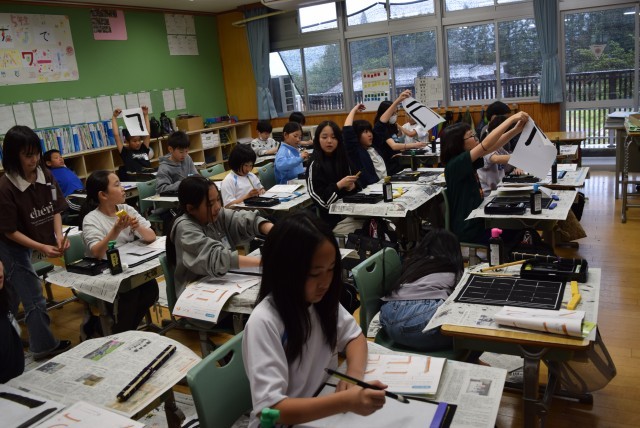 5年生の書写の授業に行くと、担当教員が「○○さんのここがいいね」と折れの部分を作品を示して褒めました。すると、「先生、ぼくのはどうですか」「これも見て」「先生、見て」と次から次へと自分の書いた「折れ」...