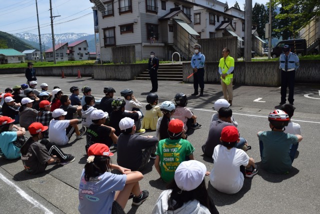 五十沢小学校の交通安全教室は、南魚沼市警察署伸すクールサポーターや駐在さん、交通安全協会の方々と行っています。いつもは職員が前庭の駐車場に,白線でコースを事前に作っていたのですが、昨日は雨で、事前にコ...