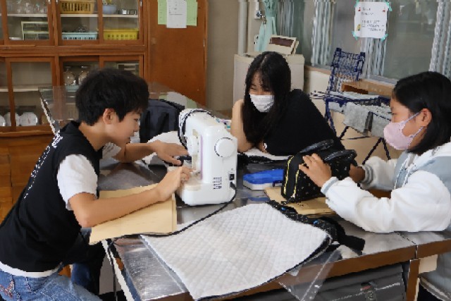 6年生は、家庭科でミシンを使用したトートバックづくりに挑戦しています。作製手順を確認しながら、真っ直ぐに縫うことができるよう慎重にミシンを操作しています。今のところ、順調に作業が進んでいます。