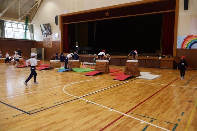 3年生が、器械運動の跳び箱に取り組んでいます。自分の力に合わせて、高さを選んだり、跳び方(開脚跳び、閉脚跳び、台上前転)を変えたりして跳んでいました。3年生の子どもたちがすてきだったところは、跳べなくても、何度も挑戦!トライしていたところです。そして、跳べた時の笑顔は最高でした!