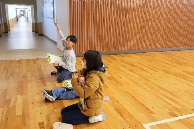 六日町小学校の4年生が当校を訪問し、総合的な学習の時間で追究してきた「防災」について、当校の4年生「きらきら学年」にポスターセッション形式で説明しました。六日町小4年生の話を聞き、学んできた内容、まとめ方の工夫、説明の仕方など、学ぶことが多く、とても刺激になったとのことです。最後に「ジャンケン列車」で交流を図りました。