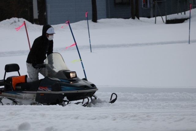 グラウンドに十分な雪が降り積もり、当校の校務員がスノーモービルで圧雪をしたり、ポールを立てたりして、クロスカントリースキーの学習をする環境を整えています。今週から、3年生以上は、北辰小地域のスキー場でアルペンスキーの学習が始まります。体育授業で雪国のスポーツを存分に親しみます。