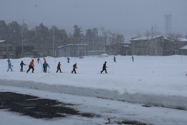 今日は、3年生、1年生、2年生、5年生が、続々とグラウンドでのスキー練習を開始しました。雪が降る中でしたが、手と足をリズムよく動かし、スムーズに滑ることができるよう、一生懸命に練習していました。