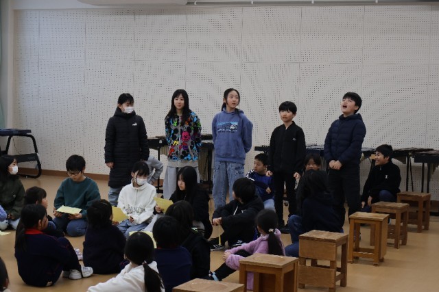 2月もあっという間に終わりが近づき、もうすぐ、卒業式を迎える3月です。今日、在校生が、卒業式で6年生に感謝の気持ちを表す呼びかけの練習がありました。「ぜひ、やりたい」と立候補した子どもたちが、大きな声で「ありがとう」のメッセージを伝えていました。在校生の思い溢れる卒業式になりそうです。