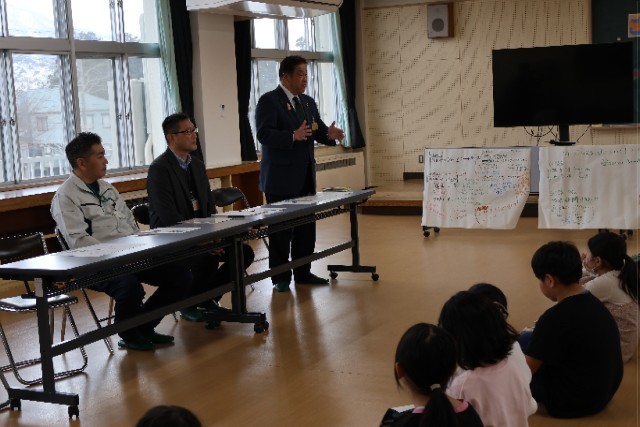 4年生が、総合的な学習の時間に追究してきた「フードロス」と「牛乳パックの再利用」について、南魚沼市林市長に学習報告を行いました。当初、市長室へ訪問する予定でしたが、学級閉鎖のため延期となり、時間を調整し来校していただきました。子どもたちは、少し緊張した様子でしたが、自信をもって発表していました。市長から「追究することの大切さ」についてお褒めの言葉をいただき、子どもたちは、さらに自信を高めていました。