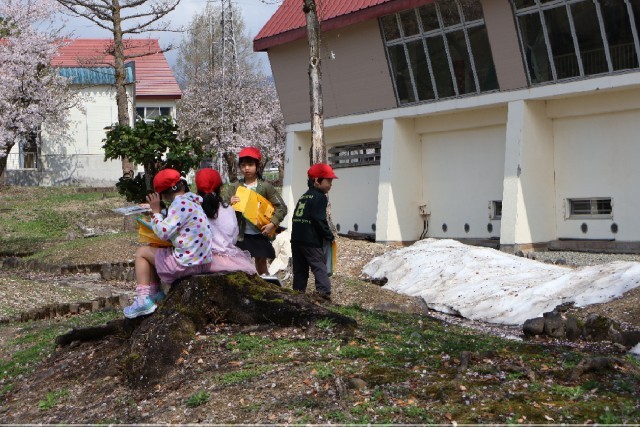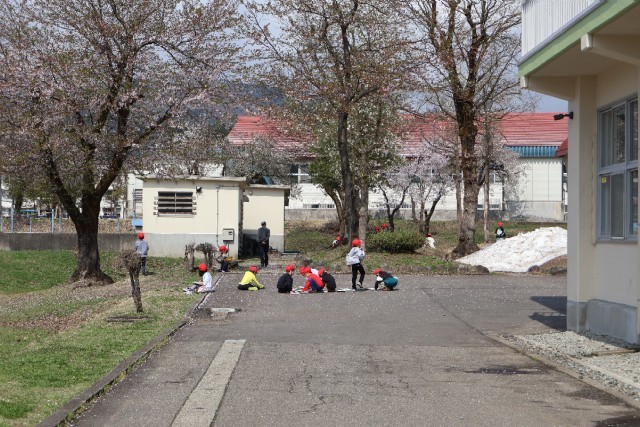 少し肌寒い日でしたが、2年生が春さがしをしていました。タブレットを使って、「カシャッ」と写真を撮るのは簡単ですが、実物をよく見て描くことは、とても大切なことです。自分が見た感じ、思いを込められるからです。桜をよく見てスケッチする子、トカゲがいないかなあと一生懸命に探している子もいました。