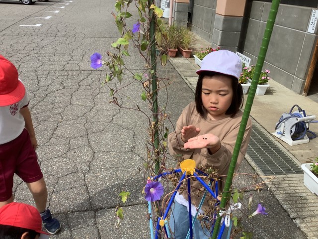 一粒の小さな種から始まったアサガオが、ぐんぐん育ち、花を咲かせ、また種をつける――