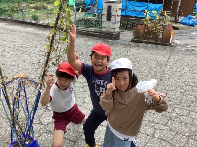 「先生!見て見て!」「中に黒いのが入ってたよ!」「たくさん採れた〜!」と、目をキラキラさせながら種を集めていました。