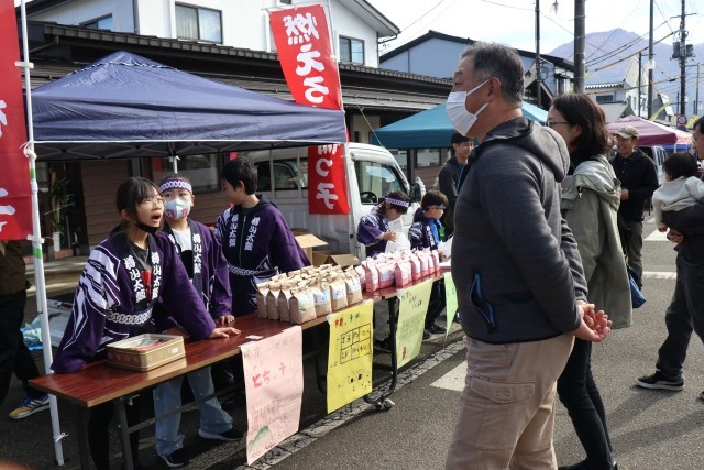 塩沢駅前つむぎ通り「軽トラ市」で栃っ子米を販売しました。