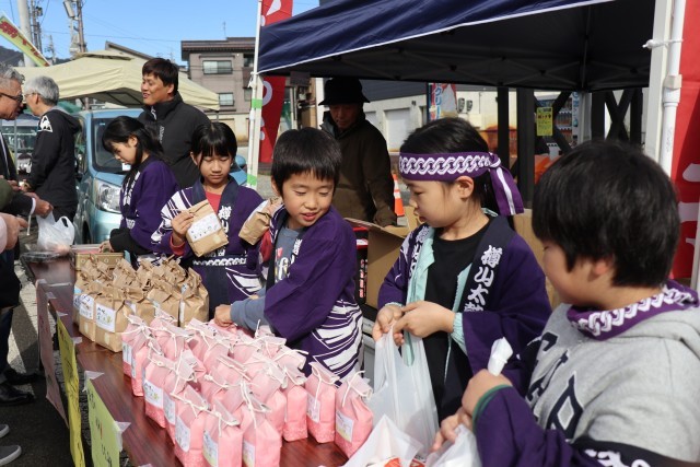 今年度は240袋、「全部売れるのかなぁ」と心配する子、「絶対全部売りたい!」とやる気満々な子、「栃っ子米を買ってくれる人に会うのが楽しみ」と期待に胸を膨らませる子、それぞれの思いを胸に軽トラ市で販売を行いました。