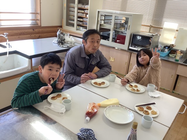 できあがった大根もちは、もちっもちっでとてもおいしく、子どもたちもうれしそうに味わっていました。大根の成長を見守り、お世話を手伝ってくださった校務員の先生にもご参加いただき、一緒に収穫の喜びを味わうことができました。