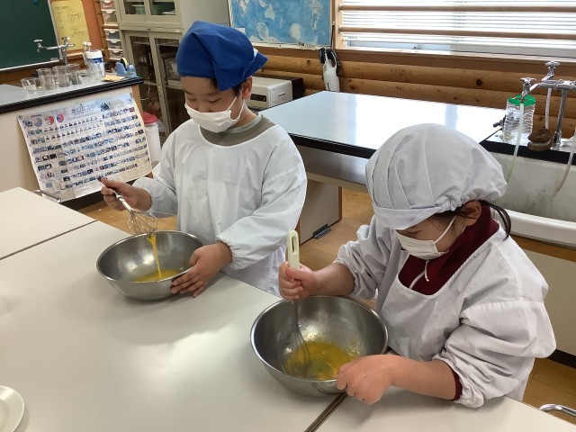 卵をそっと割ったり、小麦粉を一生けんめいまぜたりと、どの子も目を輝かせて一生懸命取り組んでいました。