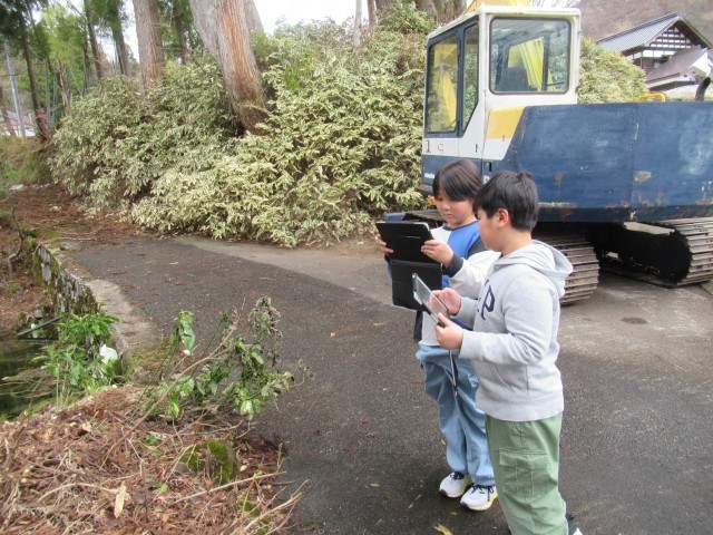 中学年の子どもたち、タブレットを小脇に抱えて地域の自然観察に出かけました。