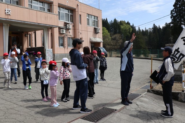 訓練後には南魚沼市消防団長様より、落ち着いて行動できていたことについてお褒めの言葉をいただきました。また、学校外で災害が起きた場合の避難についても教えていただきました。デパートなどでは、災害時に人が一斉に動き出し、大変危険な状況になることがあります。特に子どもは押しつぶされる危険もあるため、壁に沿って避難することが大切だそうです。