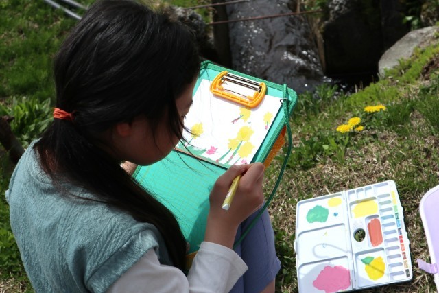そして、自分が見つけた春を、絵の具でスケッチしました。