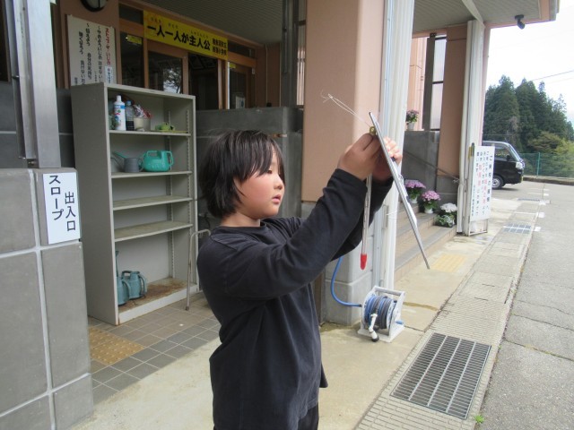 4年生の理科の学習で気温を測定しています。自分だけの温度計を手に“わくわく”しながら、毎日忘れずに測っています。