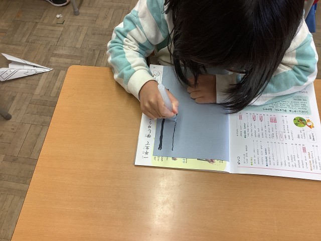 今日は鉛筆ではなく、筆を使って学習をしました。いつもとの鉛筆とは違って、少しの緊...
