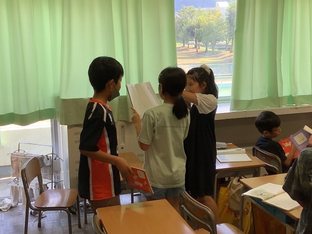 担任が読み上げたり、子ども同士で読み合ったりしながら、それぞれの考えを交流していました。
