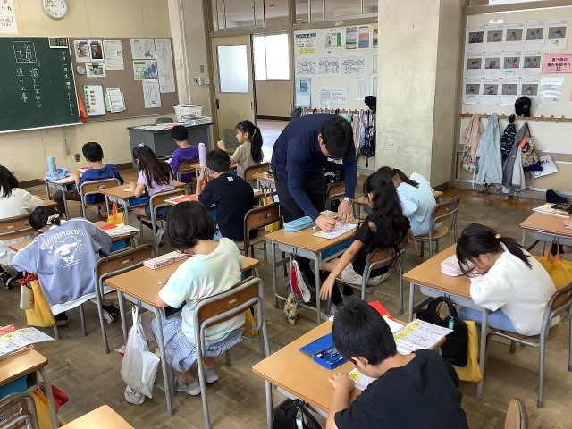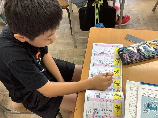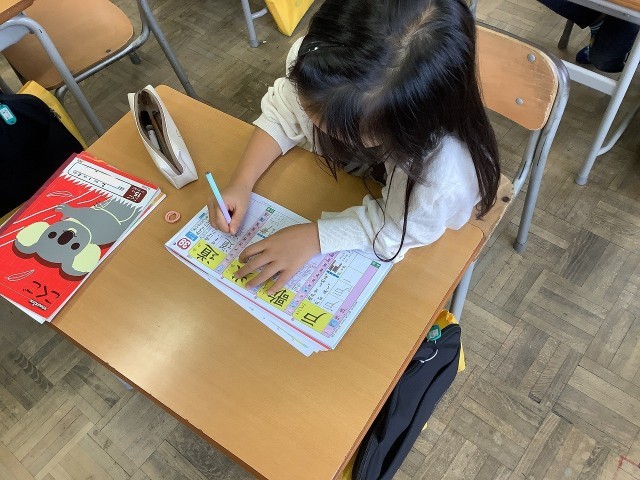 文字そのものの難しさや筆順の難しさ。担任と一緒に学習した後には、ドリルを活用して練習しながら覚えていきます。
