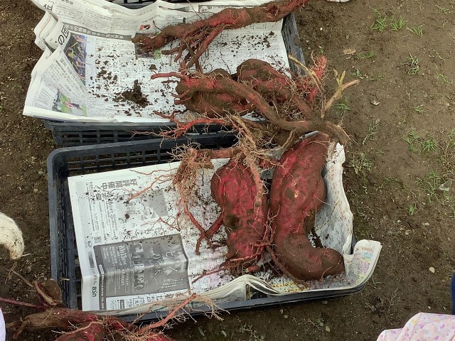 畑の中から出てきたイモを見ての第一声です。見事なサツマイモたちです。