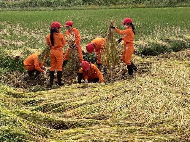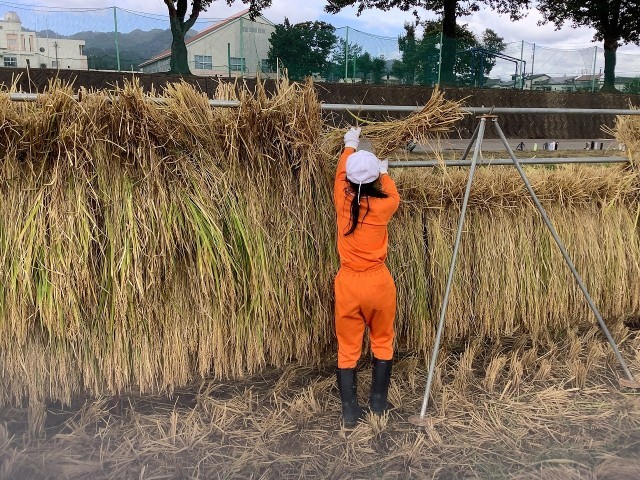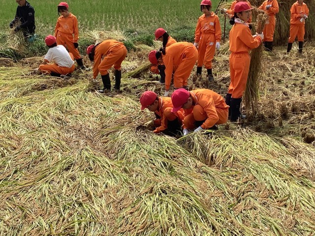 春に植えた苗の成長を感じながら、真剣に刈り取る姿を微笑ましく思いました。