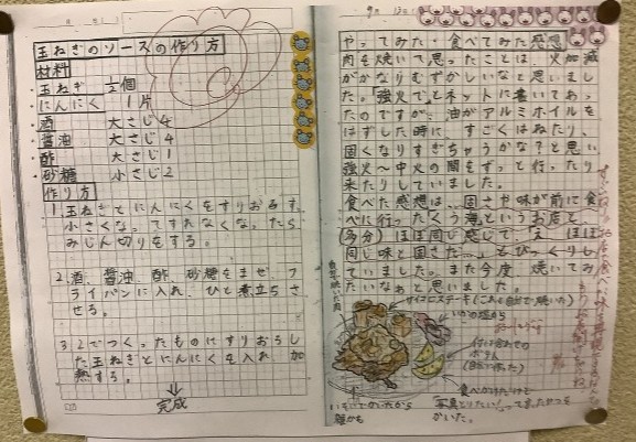 ◆6年生:料理にチャレンジした記録を丁寧にまとめています。