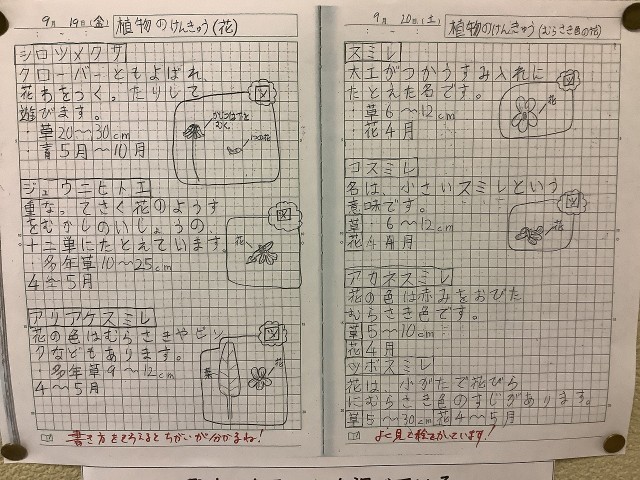 ◆4年生:イラストや図を使って丁寧にまとめています。