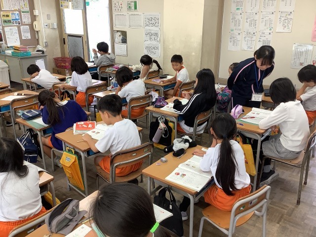 机間巡視を行い、困っている子どもたちを支援したり、できている子どもを褒め。自信をもたせたりと子どもたちに寄り添う姿がありました。