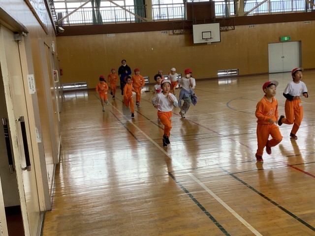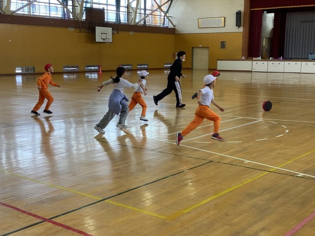いつもは2クラスでの体育なので、人数が少なく少し寂しい気もしますが、子どもたちは元気いっぱいです。